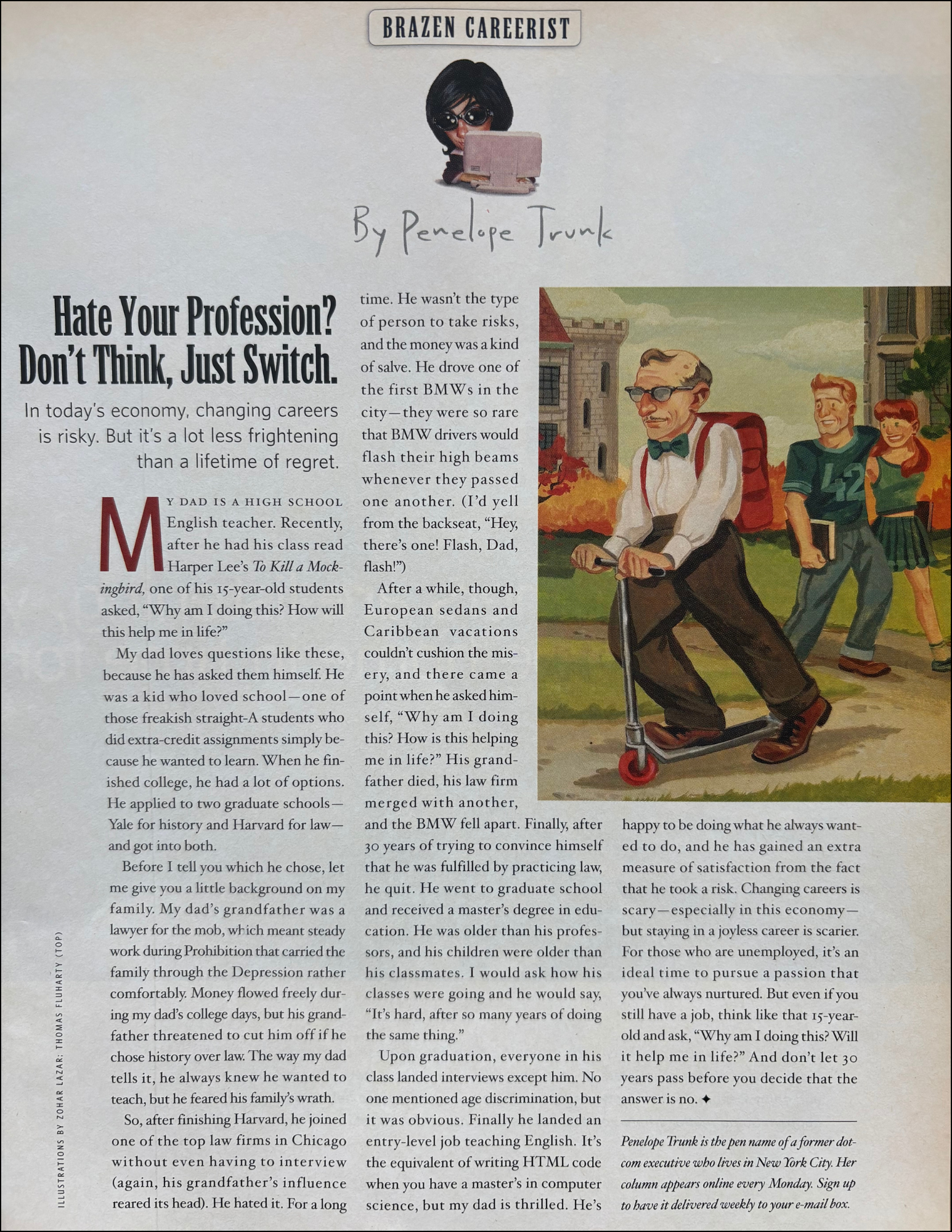 The illustrator, Zohar Lazar, was well-known. He illustrated columns for writers like David Sedaris and never made them look ridiculous. The direction clearly came from my magazine.
