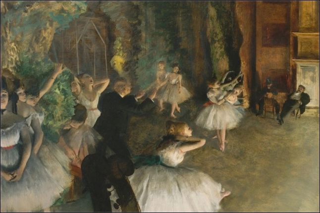 Detail of The Rehearsal of the Ballet Onstage (1874) by Edgar Degas